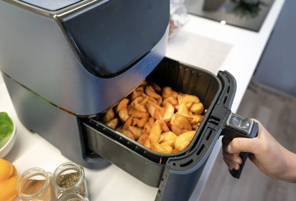 • O manual e a página do produto reforçam que vem com assadeiras antiaderentes e cesto; e até recomendam a “cura” inicial do antiaderente (indício de antiaderente mais sensível a abuso/abrasão, como é comum nesse tipo de produto).
