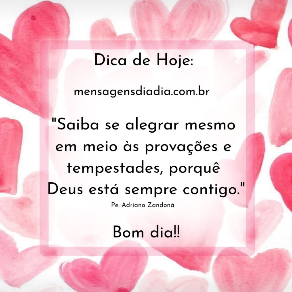 Dica de hoje: “Saiba se alegrar mesmo em meio às provações e tempestades, porquê Deus está sempre contigo.” Pe. Adriano Zandoná