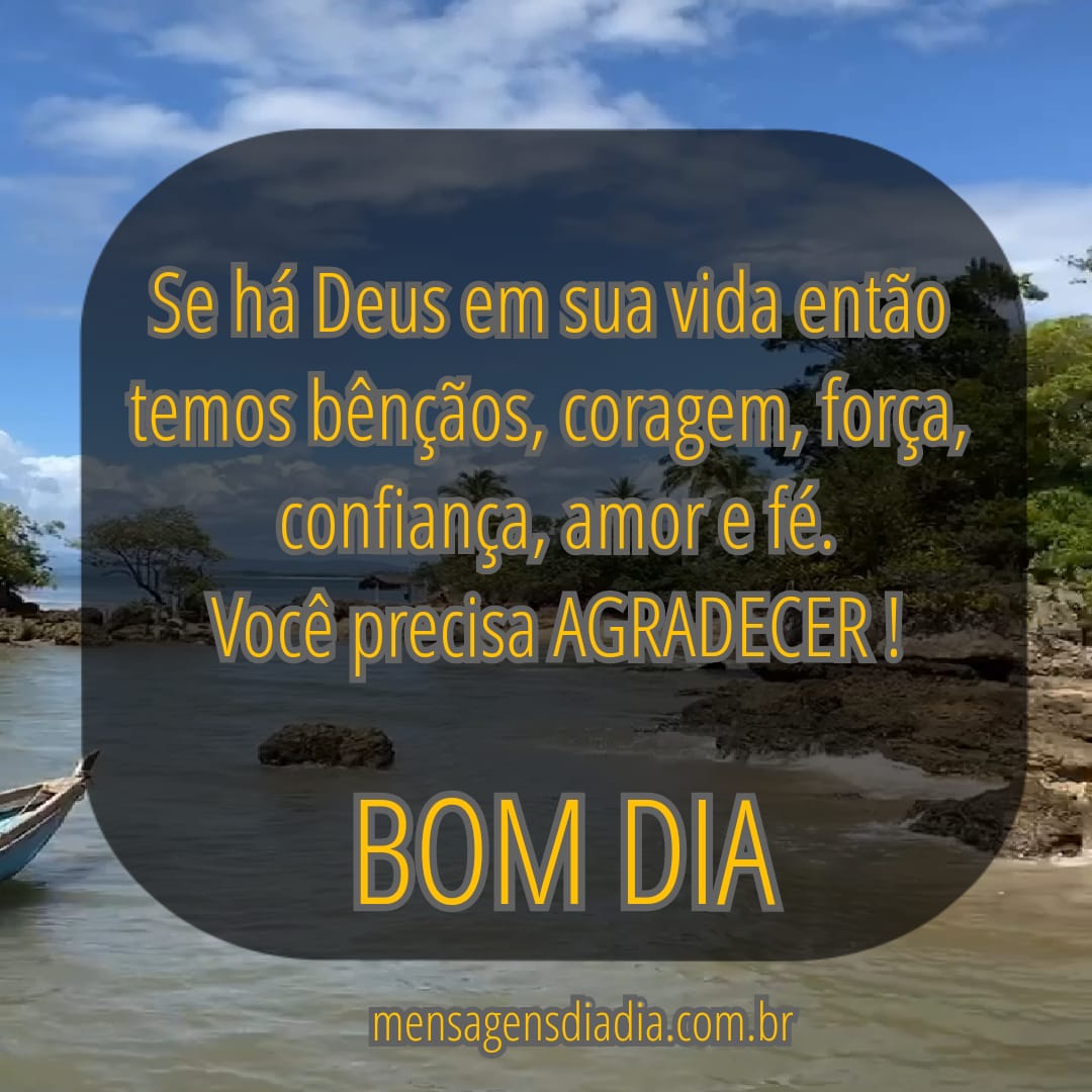 Se há Deus em sua vida então temos bênçãos, força, coragem, confiança, amor e fé. Você precisa AGRADECER! BOM DIA