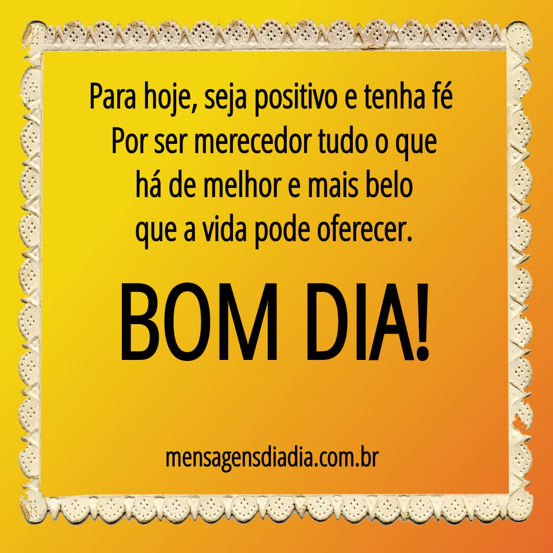 Para hoje, seja positivo e tenha fé. Por ser merecedor tudo o que há de melhor e mais belo que a vida pode te oferecer.