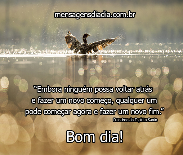 “Embora ninguém possa voltar atrás e fazer um novo começo, qualquer um pode começar agora e fazer um novo fim.” Francisco do Espírito Santo Bom