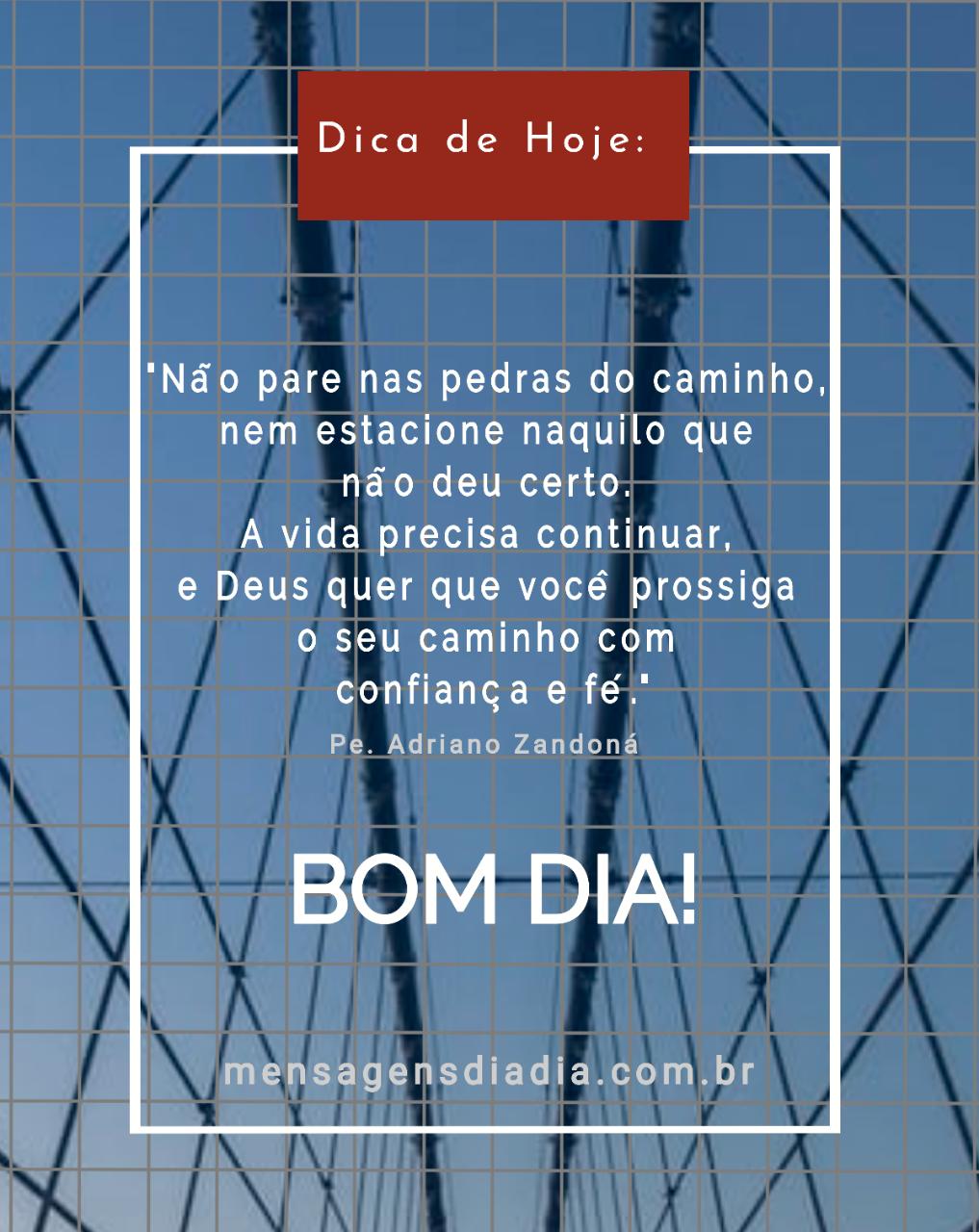 Dica de Hoje: Não pare nas pedras do caminho, nem estacione naquilo que não deu certo. A vida precisa continuar, e Deus quer que você