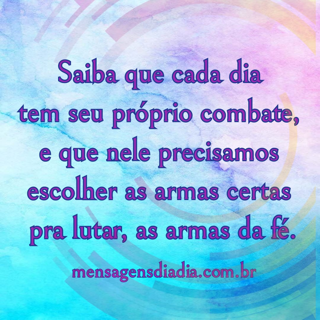 Saiba que cada dia tem o seu combate, e que nele precisamos escolher as armas certas pra lutar, as armas da fé A cada dia
