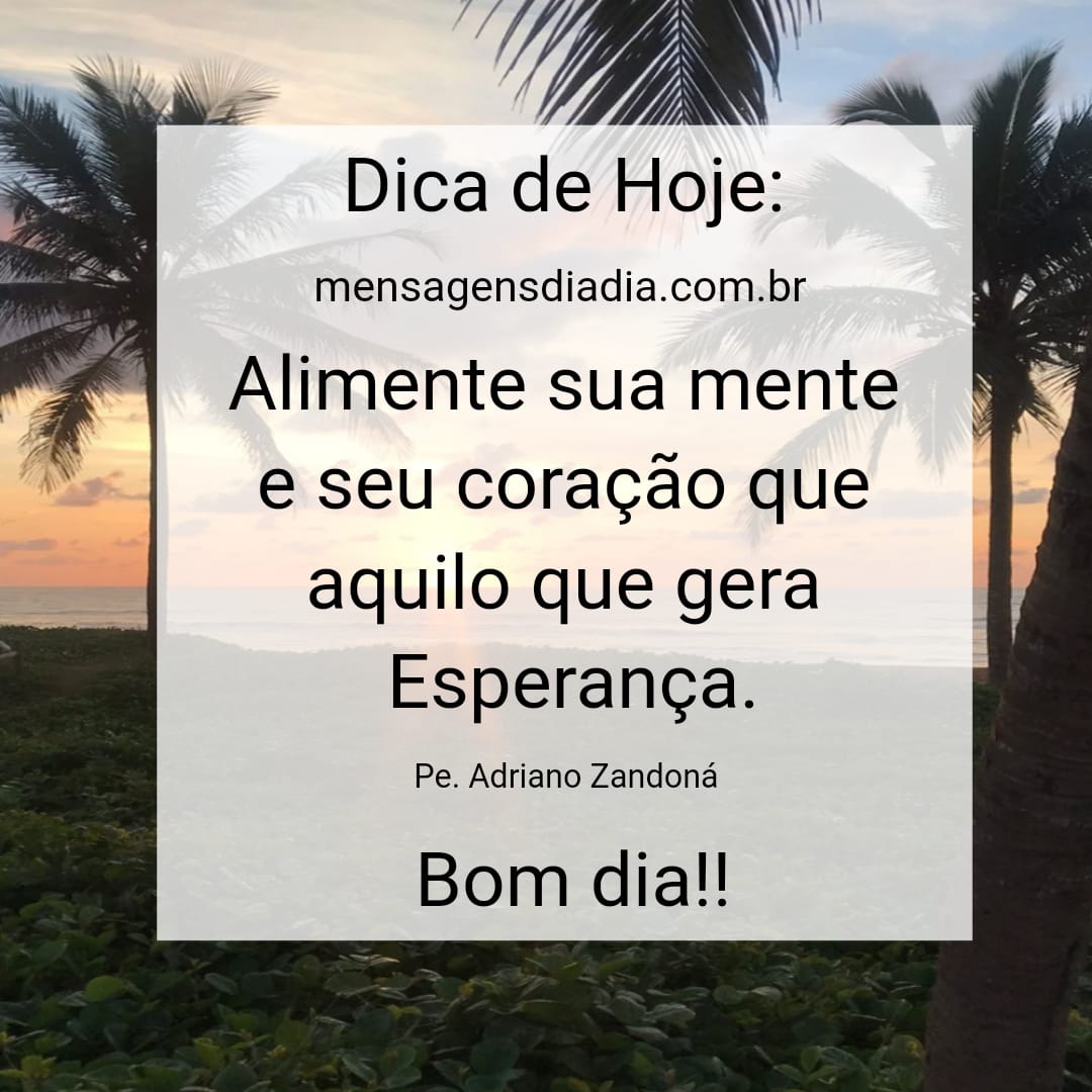 Alimente sua mente e seu coração que aquilo que gera Esperança. Muito se diz que a esperança é a última que morre, mas a Bíblia