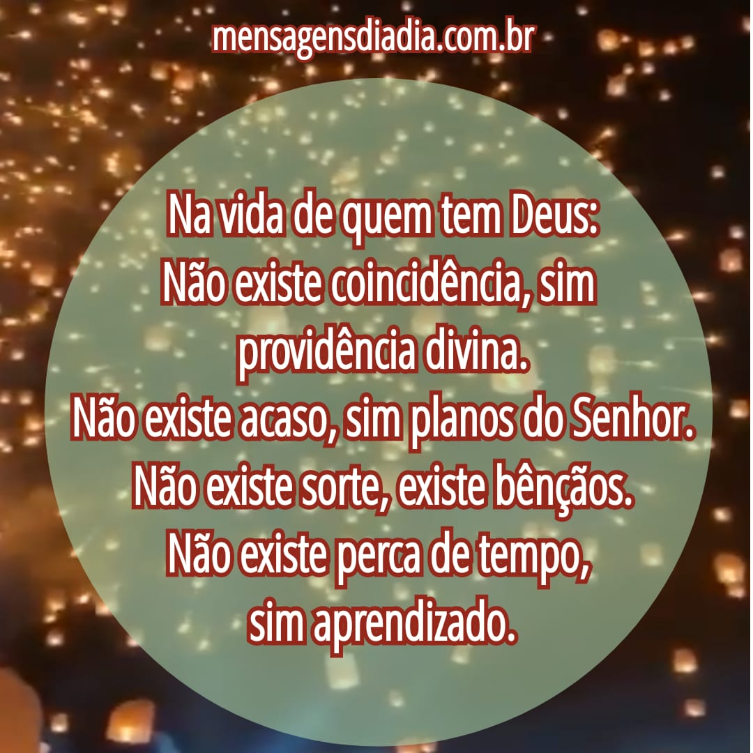 Na vida de quem tem Deus: Não existe coincidência, sim providência divina. Não existe acaso, sim planos do Senhor. Não existe sorte, existe bênçãos. Não