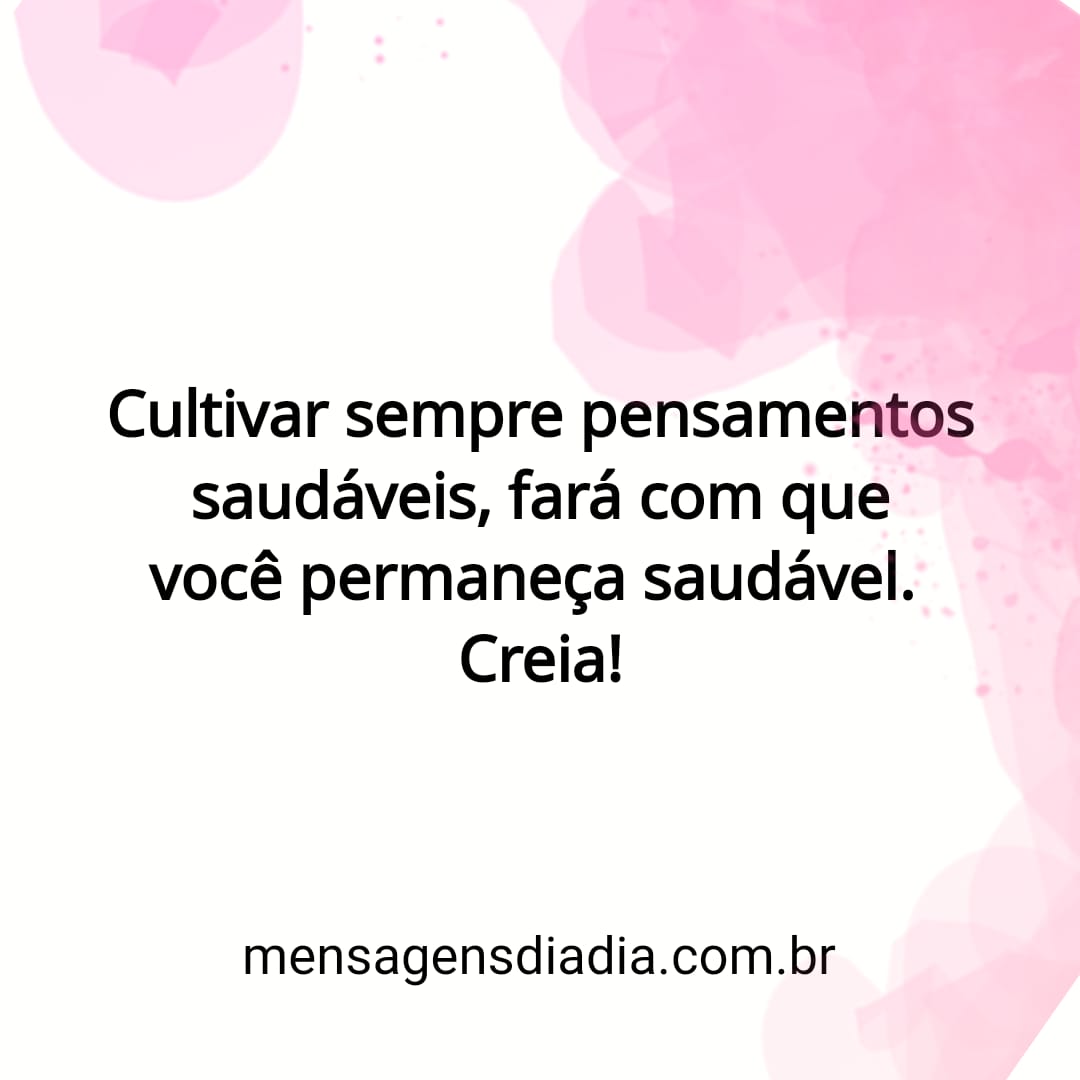 Cultivar sempre pensamentos saudáveis, fará com que você permaneça saudável. Creia!