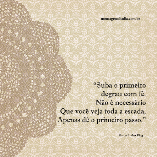 “Suba o primeiro degrau com fé. Não é necessário que você veja toda a escada, apenas dê o primeiro passo.” Ler mais »