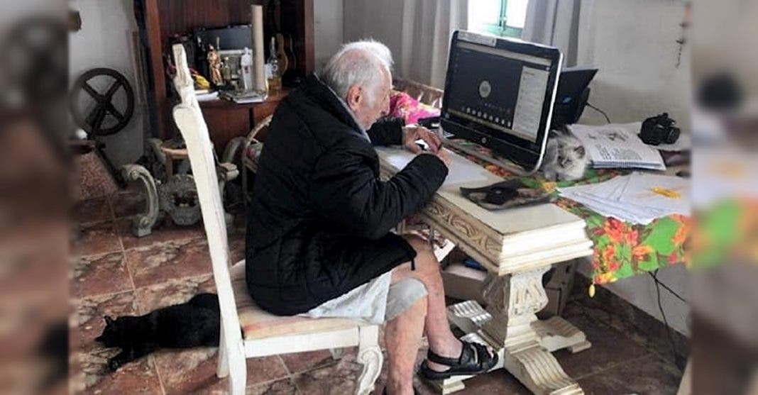 Por causa da pandemia, as aulas estão sendo pela internet e mesmo sem saber mexer no computador, ele prometeu que não vai desistir e vai