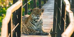 Onça aproveita ausência de turistas e se apropria de passarela antes usada por eles no Pantanal