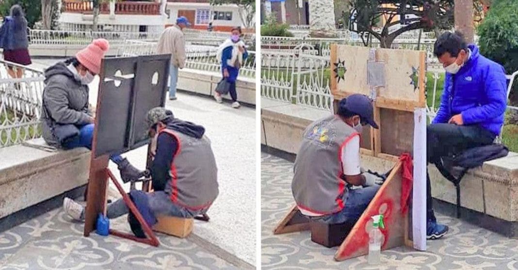 Ele não podia ficar sem trabalhar e perder o seu sustento, então teve a criativa ideia de montar uma barreira de proteção entre ele e