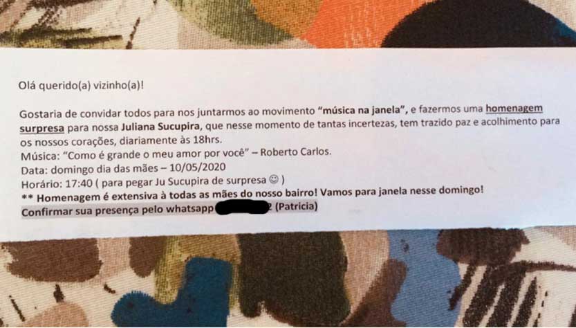 Há 71 dias, às 18h, Juliana Sucupira alegra moradores da Gávea com seu canto. Pois os vizinhos decidiram inverter os papeis e fazer uma homenagem