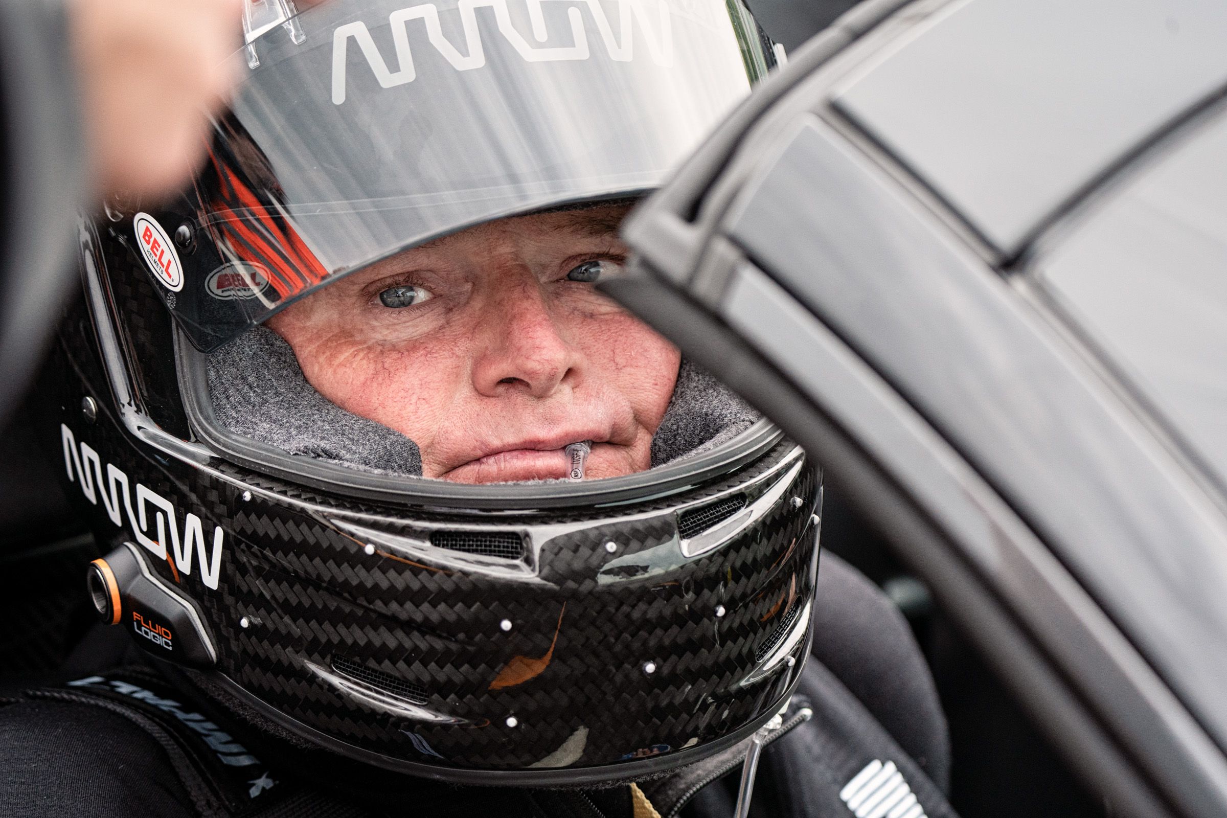 Enquanto o piloto Sam Schmidt percorre o histórico Goodwood Racetrack em um McLaren 720S, atingindo velocidades superiores a 241 quilômetros por hora, do lado de