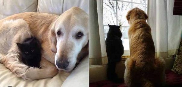 Uma gatinha consolando um cão golden triste é a cena mais fofa que você vai assistir hoje! Nova, uma gata preta e desinibida, foi filmada