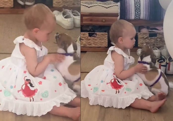 Um vídeo encantador mostra o momento em que uma garotinha, de apenas 2 anos, acalma um cachorrinho que sofre de ansiedade. A mãe, Siera Bearchell,