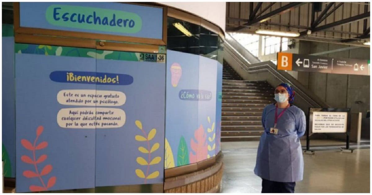 Na cidade de Medellín, na Colômbia, foram instalados ‘ouvintes’, que são espaços como ‘bolhas’ em diferentes estações de metrô para que qualquer pessoa possa receber
