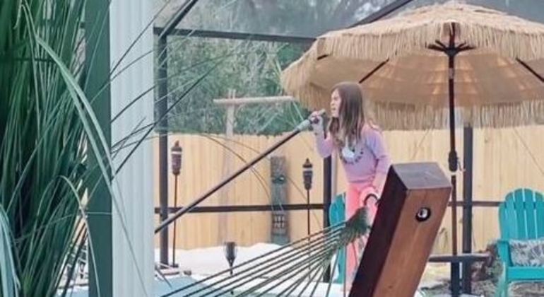 Anni Coverly, de 8 anos, estava fazendo sua “apresentação musical” enquanto limpava a piscina de sua casa na Flórida, nos Estados Unidos. O que a