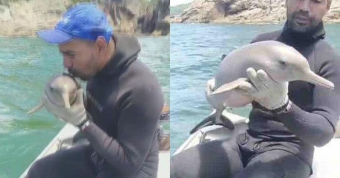 O vídeo de um pescador salvando um filhote de golfinho que estava preso em uma rede pesca emocionou todos os internautas. Augusto Muniz, de 39