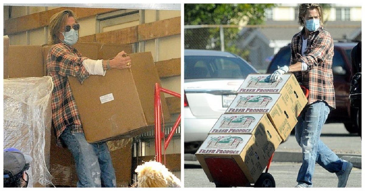 Brad Pitt mais uma vez demonstrou grande entusiasmo ao se voluntariar para uma organização que leva alimentos aos bairros mais carentes de Los Angeles, Estados