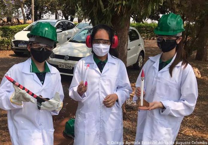 Tão jovens e já pensando e agindo para ajudar a natureza. Alunas brasileiras de 14, 15 e 16 anos desenvolveram um minifoguetes para reflorestar áreas