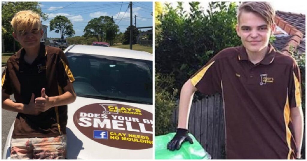Apesar das recusas, Clay estava determinado a trabalhar, por isso após 2 anos de tentativas, aos 17 anos criou o seu próprio negócio, que chamou de ‘Clay’s Bin Cleaning’, com o qual se encarrega de limpar as latas de lixo dos seus vizinhos e cobra AU US $ 10 para cada contêiner, usando produtos biodegradáveis e livres de tóxicos.
