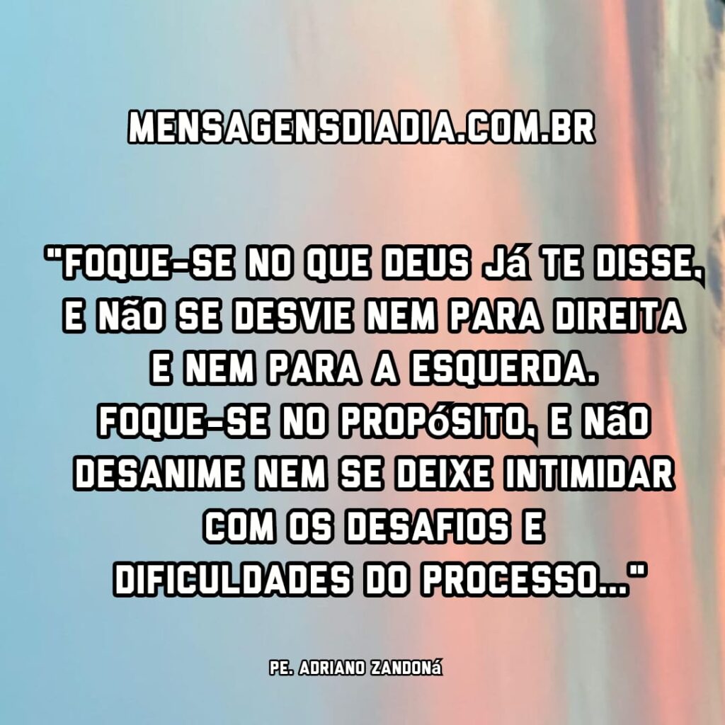 “Foque-se no que Deus já te disse, e não se desvie nem para direita e nem para a esquerda. Foque-se no propósito, e não desanime nem se deixe intimidar com os desafios e dificuldades do processo…”