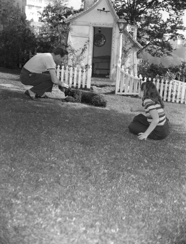 Brincando com sua filha no jardim. (Earl Theisen)