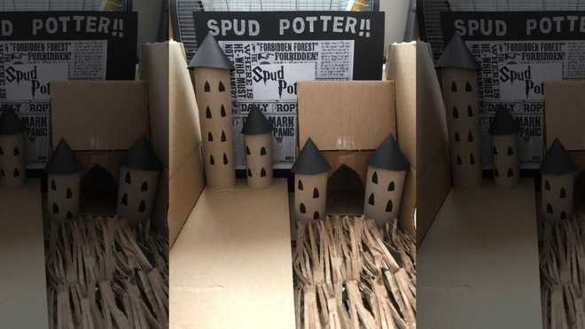 Com o tempo disponível, Murray-Lang começou a criar pequenos modelos usando caixas de papelão e móveis de boneca para criar espaços icônicos como Hogwarts, de Harry Potter.